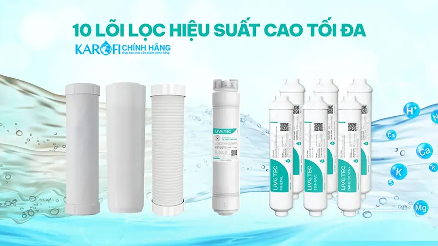 Sở hữu 10 lõi lọc tiên tiến, mang đến khả năng lọc vượt trội, đảm bảo nguồn nước sau lọc hoàn toàn tinh khiết. Với hệ thống lọc đa tầng, Livotec 630 không chỉ loại bỏ hiệu quả tạp chất, cặn bẩn, ion kim loại nặng và các chất ô nhiễm độc hại, mà còn giúp giữ lại những khoáng chất cần thiết cho sức khỏe.