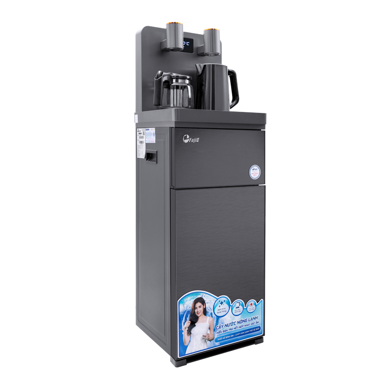 - Bình lọc nước đặt âm bên dưới tiện lợi cho việc thay bình. Nước lạnh được làm lạnh và lấy ra từ vòi trên cao thuận tiện bằng một thao tác nhẹ nhàng bấm nút . Bình siêu tốc lấy nước trực tiếp từ vòi có khả năng đun sôi nước tới 100 độ C cho nhiều mục đích sử dụng khác nhau. Bên trái có bình giữ nhiệt giúp hâm nóng trà, cafe tiện lợi