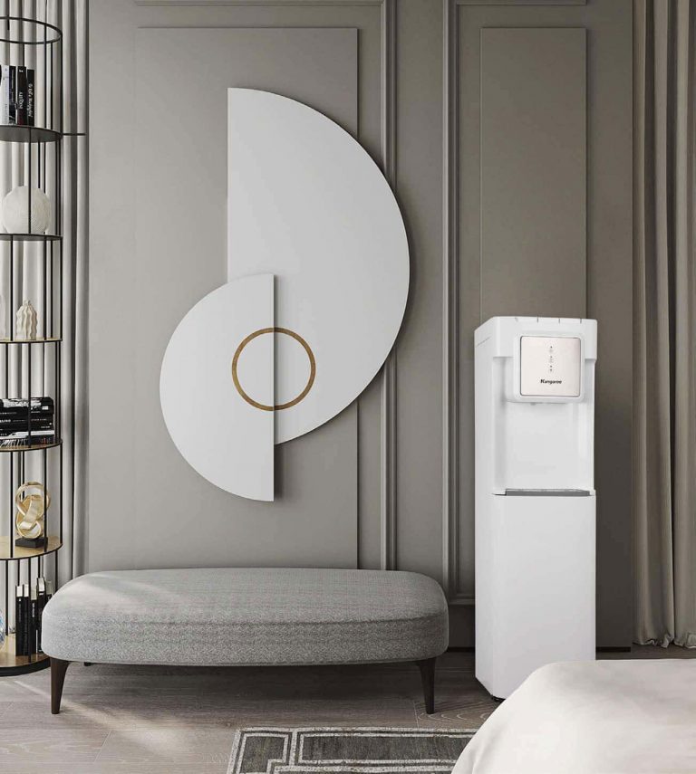 Máy làm nóng lạnh nước uống Kangaroo KG60A3 có thiết kế nhỏ gọn, màu trắng tinh tế sang trọng nổi bật không gian. Đặc biệt, máy tích hợp công nghệ bình hút âm hiện đại, giúp bạn dễ dàng thay bình nước phía dưới máy và tăng tính thẩm mỹ hơn bình úp thông thường.