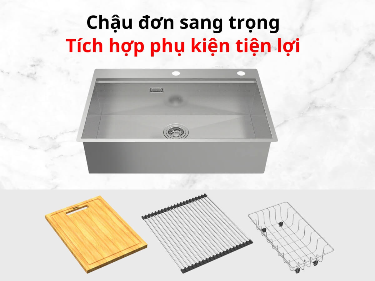 Thiết kế chậu đơn sang trọng, tích hợp phụ kiện tiện lợi