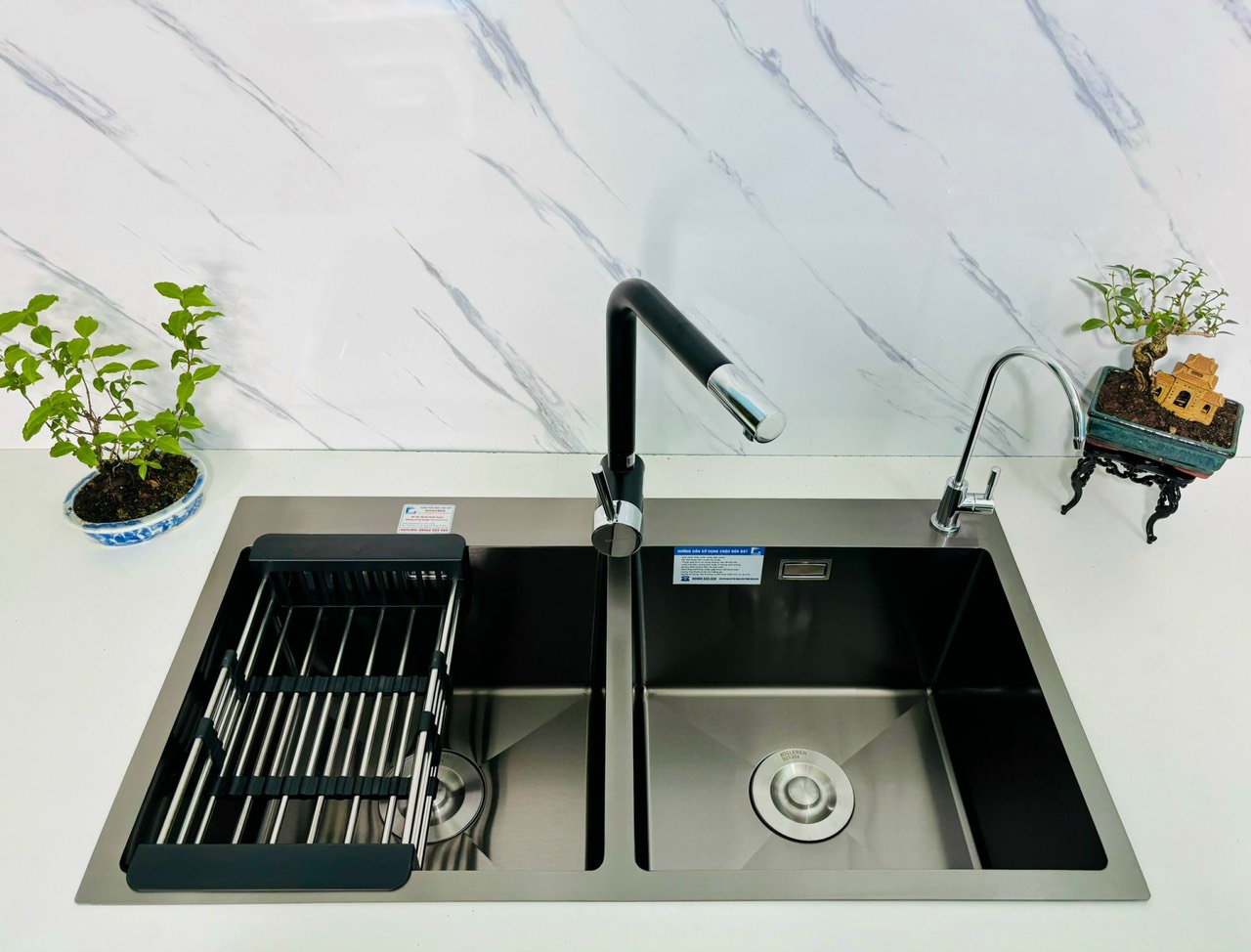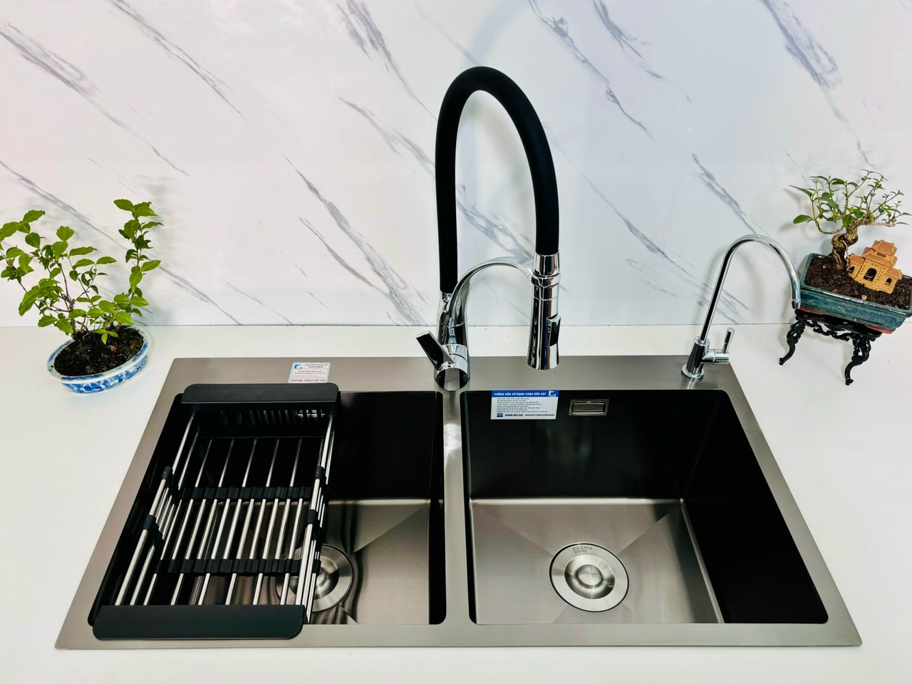 - Chậu 2 hố cân đối: Hai hố rửa có kích thước bằng nhau, tạo nên tổng thể cân đối, hài hòa cho không gian bếp.