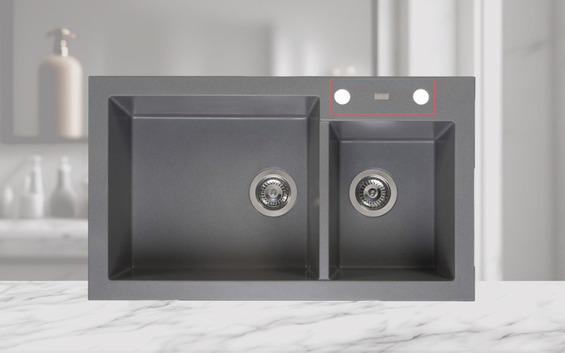Thiết kế độc đáo với 2 lỗ chờ sẵn để lắp vòi nóng lạnh và vòi lọc nước