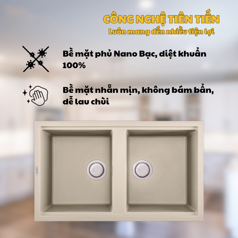 Điểm đặc biệt của Malloca BIANCO K-45062 nằm ở lớp phủ Nano Bạc trên bề mặt. Công nghệ tiên tiến này giúp diệt khuẩn 100%, ngăn ngừa sự phát triển của vi khuẩn và nấm mốc, đảm bảo an toàn vệ sinh tuyệt đối cho thực phẩm và sức khỏe gia đình bạn.