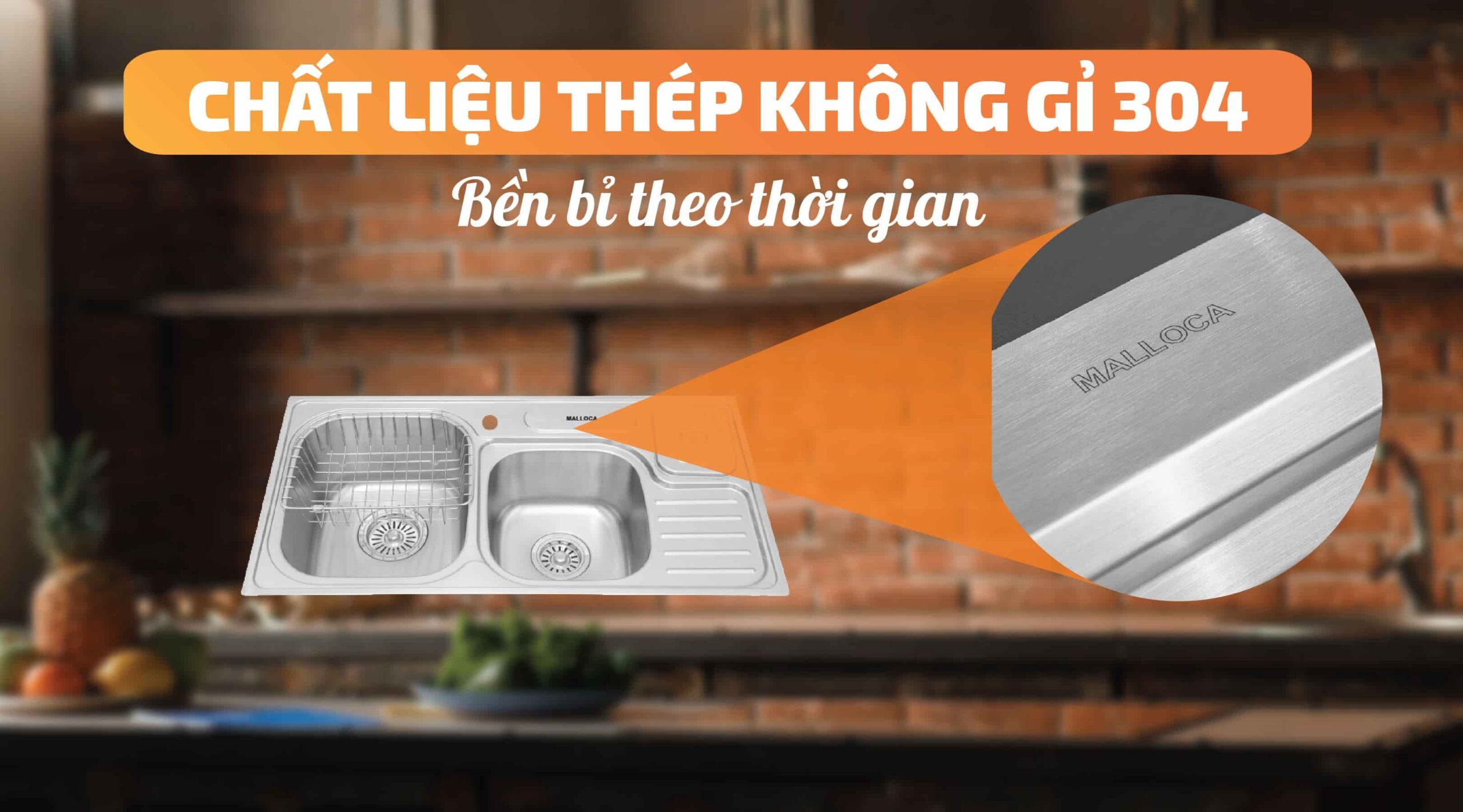 Chất liệu của chậu rửa bát Malloca không chỉ đảm bảo tính bền bỉ và độ bền cao, mà còn mang lại đặc tính bền màu tốt.