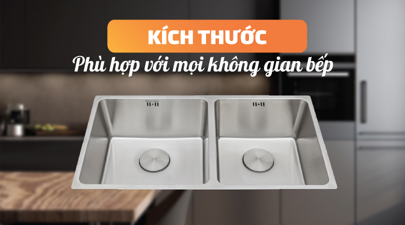 Ngăn rửa 2 ngăn với kích thước khác nhau được phân tách rõ ràng giúp bạn linh hoạt trong việc sử dụng. Kiểu dáng với độ nông, sâu phù hợp mang lại sự tiện ích tối đa và không gian để sắp xếp các đồ gia dụng khác.