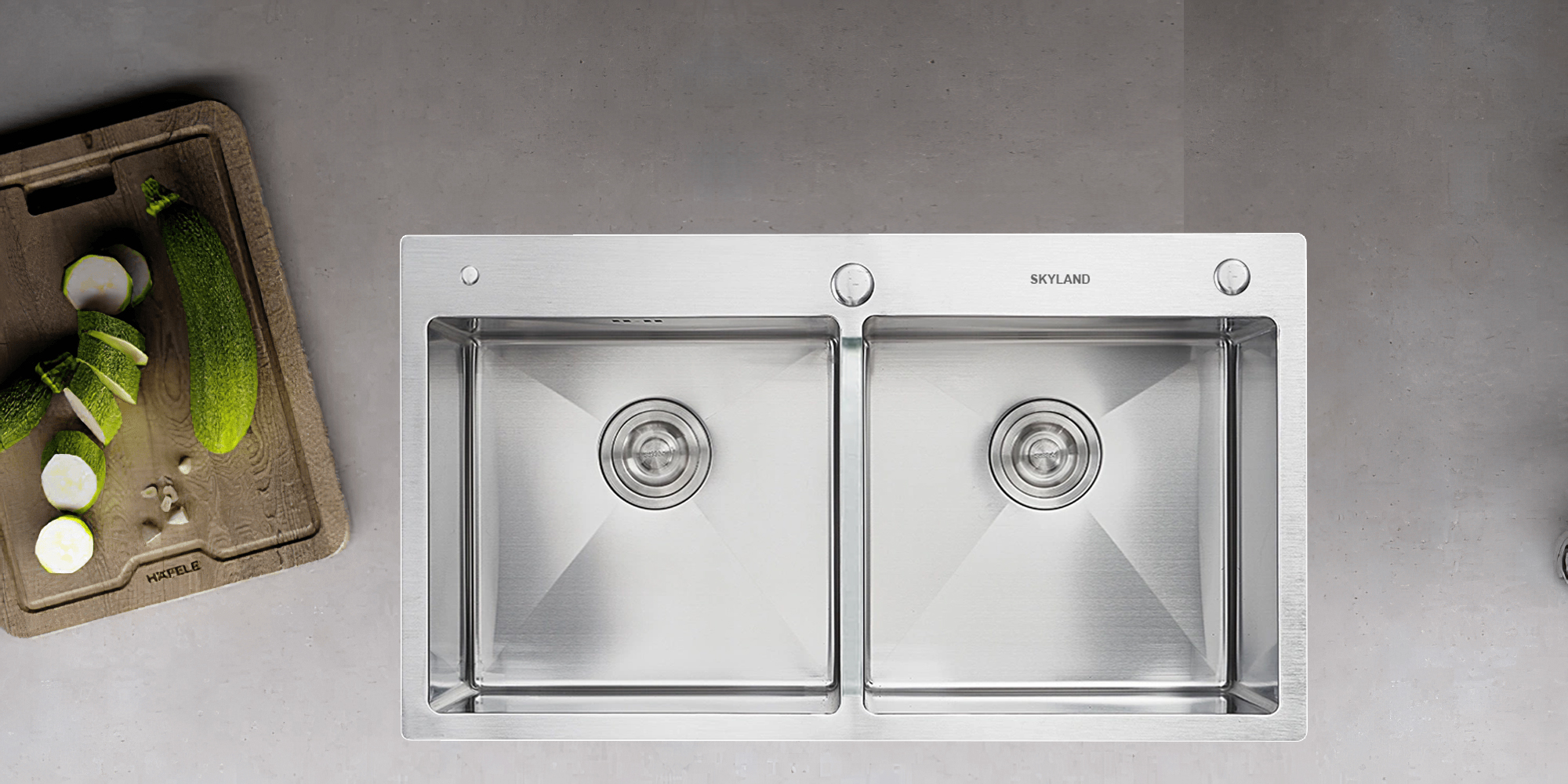Phần mặt chậu được thiết kế 2 lỗ để lắp vòi, 1 lỗ lắp vòi rửa bát thông thường, lỗ còn lại có thể sử dụng để lắp thêm vòi lọc nước của máy lọc nước RO.