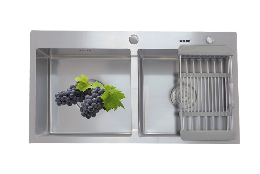 Chậu trang bị thêm phụ kiện rổ rút có thể kéo dài, thu gọn, gác trực tiếp lên thành chậu. Rổ rút có thể dùng để đựng thực phẩm, rau củ quả, bát đũa sau khi rửa giúp làm ráo nước nhanh chóng.