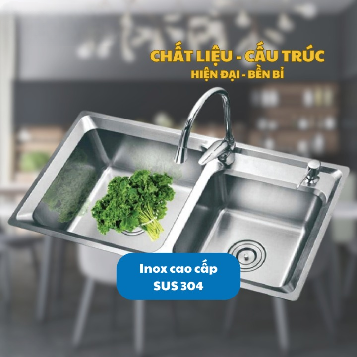 Phần mặt chậu được thiết kế 2 lỗ để lắp vòi, 1 lỗ lắp vòi rửa bát thông thường, lỗ còn lại có thể sử dụng để lắp thêm vòi lọc nước của máy lọc nước RO.