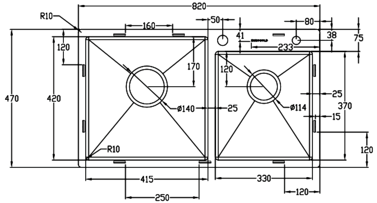 - Có 2 lỗ vòi (vòi rửa bát, vòi lọc) chờ lắp đặt
