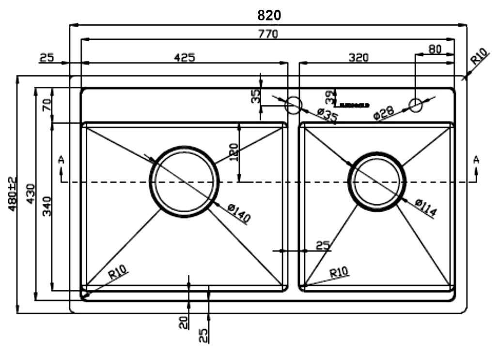 - Thiết kế chậu 2 hố lệch cho phép chọn hố chậu theo nhu cầu sử dụng