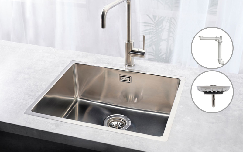 Chậu rửa chén R32855 được trang bị đầy đủ các phụ kiện đi kèm gồm: