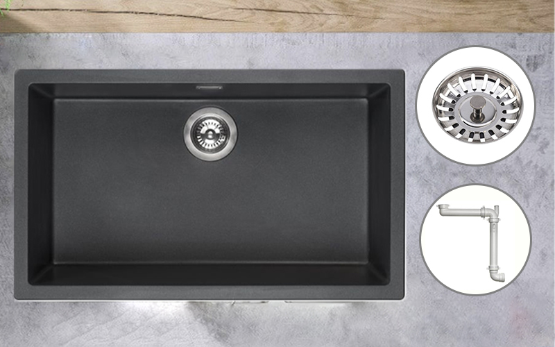 Chậu rửa chén bát đá Reginox Amsterdam 72 Đen R30882 có thiết kế tinh gọn, mềm mại, và được tối ưu với 1 hố rửa lớn.