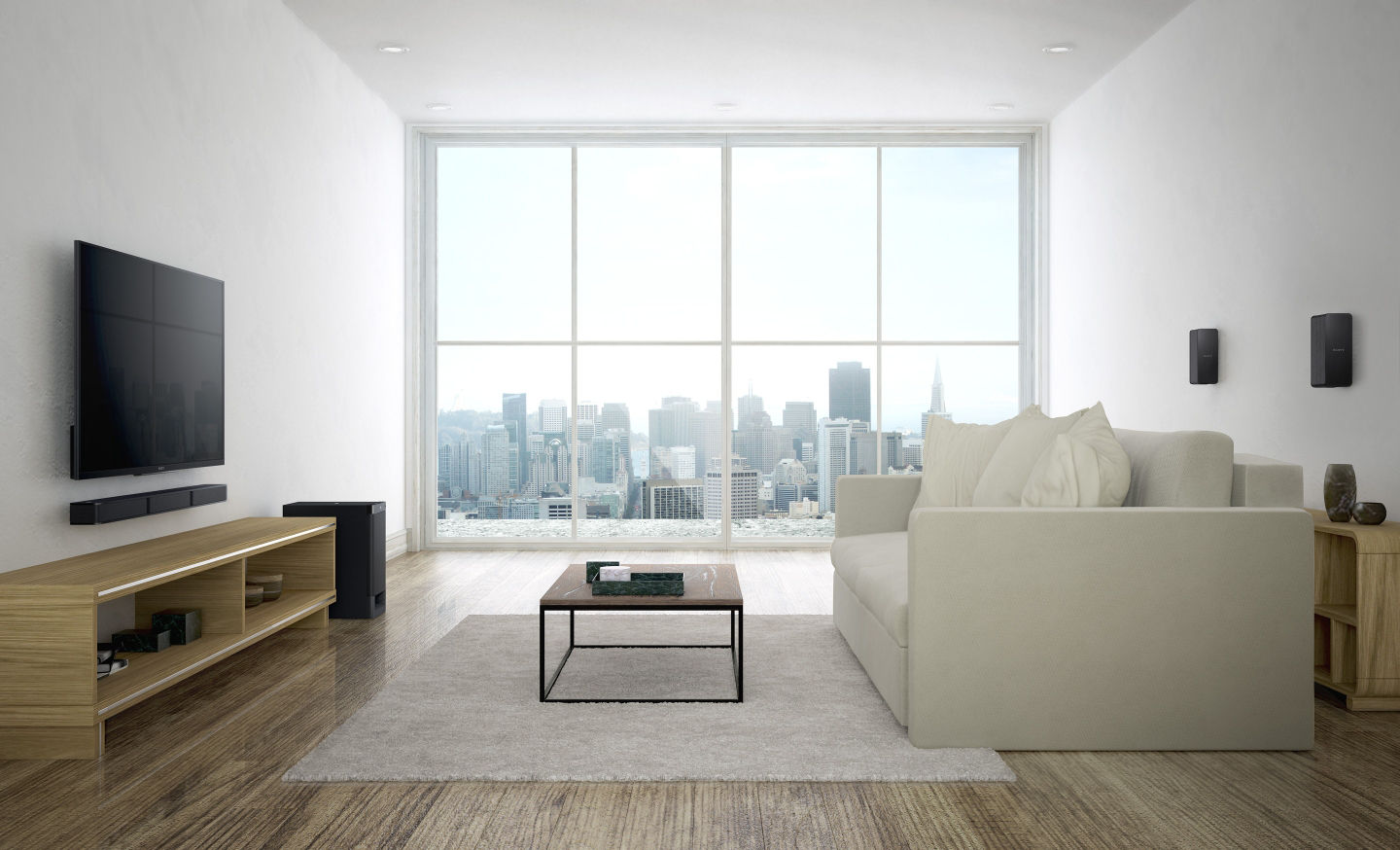 Hệ thống dàn âm thanh Sony 5.1 kênh dễ di chuyển và lắp đặt, gồm ba loại: loa chính, loa sau và loa siêu trầm với tổng công suất tới 600W.