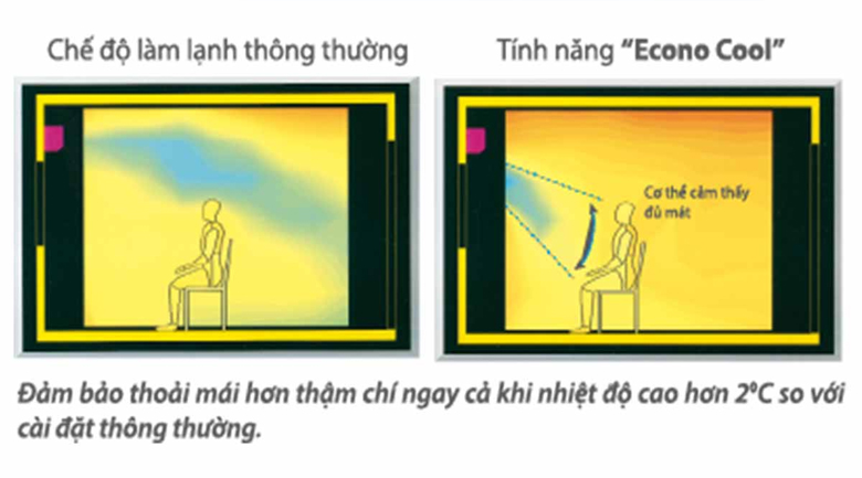 Tính năng Econo cool tự động điều chỉnh hướng gió dựa trên nhiệt độ tại cửa gió và tăng hiệu quả tiết kiệm năng lượng lên 20%.
