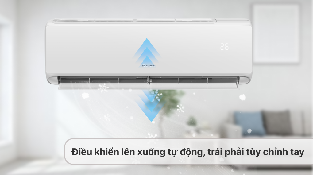 Hoạt động với cơ chế đảo gió lên xuống tự động giúp hơi lạnh tỏa đi nhanh và đồng đều hơn, tuy nhiên chế độ trái phải cần chỉnh bằng tay.
