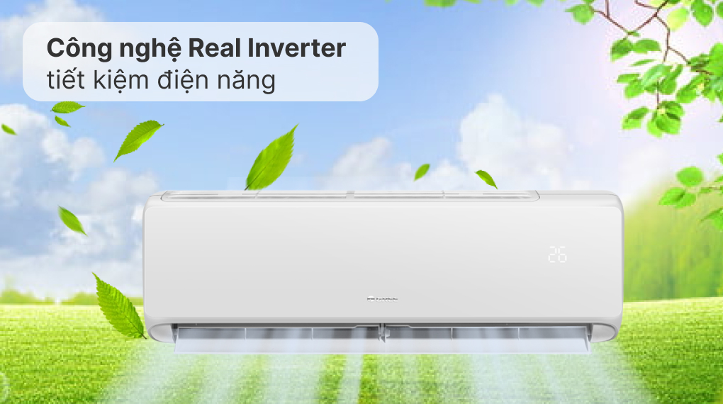 Máy lạnh Gree được trang bị công nghệ biến tần – Real Inverter, trong quá trình hoạt động máy nén sẽ hoạt động ở tần số thấp. Nhờ đó tối ưu khả năng làm lạnh, tiết kiệm 60% điện năng và máy luôn vận hành êm ái và bền bỉ.