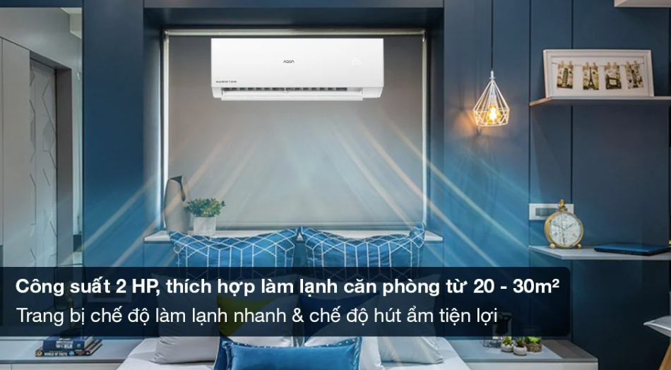 Điều hòa 1 chiều Inverter AQA-RV18QE có công suất 2HP sẽ phù hợp làm mát cho diện tích phòng rộng từ 20 – 30m2.