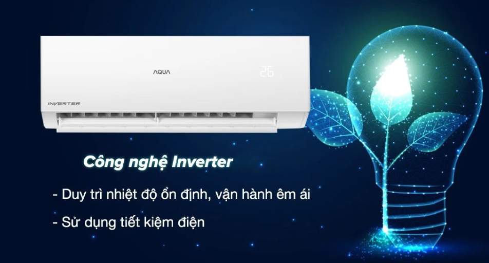 Máy lạnh Aqua đạt chuẩn nhãn năng lượng 5 sao và có hiệu suất tiêu thụ điện khoảng 1.72 kW/h, không lo tốn điện.