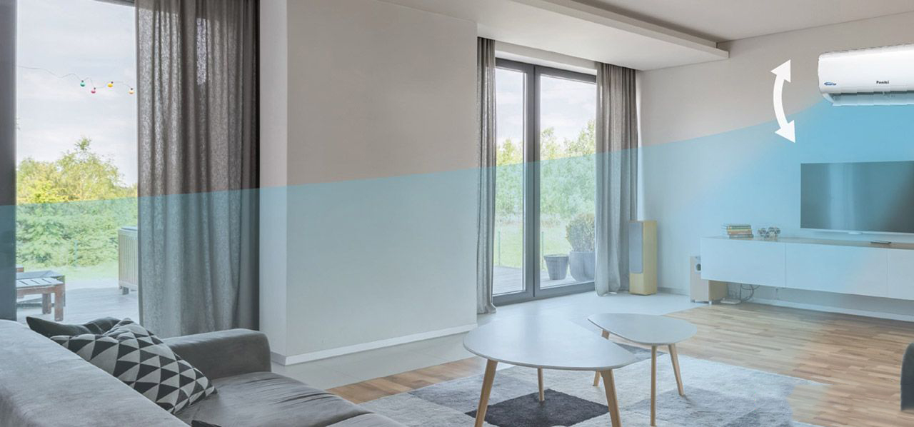 Cánh đảo gió của máy lạnh Funiki Inverter (1.5Hp) HIC-12TMU được thiết kế linh hoạt với góc mở lớn, giúp tăng lưu lượng khí lạnh thổi ra được nhiều hơn, làm gia tăng khả năng làm lạnh đáng kể tới từng góc của không gian phòng.