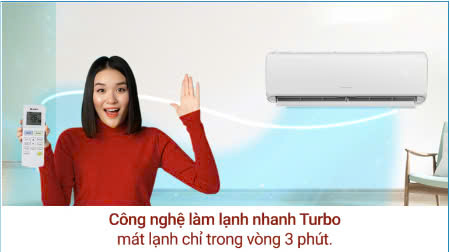 – Với Turbo, máy sẽ đẩy mạnh công suất hoạt động, tạo ra lưu lượng gió lớn hơn nhiều lần và có thể thổi xa tới 6m, mang đến một làn gió mát lạnh chỉ trong vòng 3 phút.