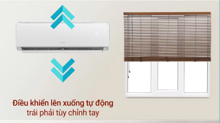 – Điều khiển lên xuống tự động, trái phải tùy chỉnh tay, cho hơi lạnh lan tỏa đều khắp phòng.