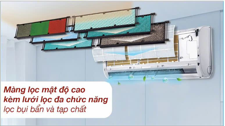 – Máy lạnh Gree này có trang bị màng lọc mật độ cao kèm lưới lọc đa chức năng nên có thể lọc các bụi bẩn, hạt li ti, lông thú có trong không khí. Nhờ đó mang đến không gian trong lành và an toàn hơn.