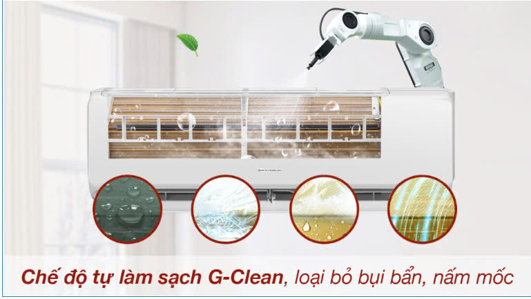 – Chế độ tự làm sạch G-Clean sau khi được kích hoạt sẽ tự hong khô dàn lạnh tránh tình trạng ẩm mốc và vi khuẩn sinh sôi.