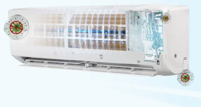 Màng lọc kháng khuẩn của máy có mật độ cao hơn so với điều hòa thông thường cùng với đó là sự kết hợp với màng lọc than hoạt tính, màng lọc catechin trà xanh giúp tăng khả năng thanh lọc không khí để ức chế vi khuẩn, nấm mốc. Điều này sẽ giúp không khí tỏa ra mát mẻ, an toàn hơn cho sức khỏe của người dùng.