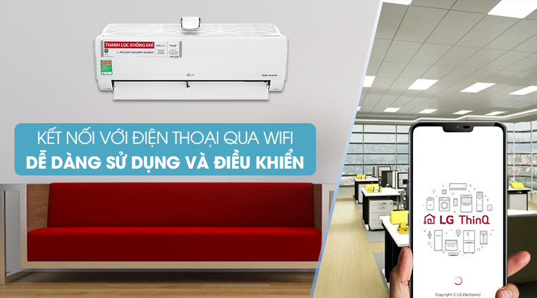 Chiếc máy lạnh LG Inverter này còn được tích hợp bộ phát wifi, điều này cho phép bạn kết hợp với điện thoại thông minh dễ dàng, giúp điều khiển các chức năng máy lạnh được tiện lợi hơn mà không cần phải dùng remote. Giao diện ứng dụng dễ thao tác, tải app tại đây.