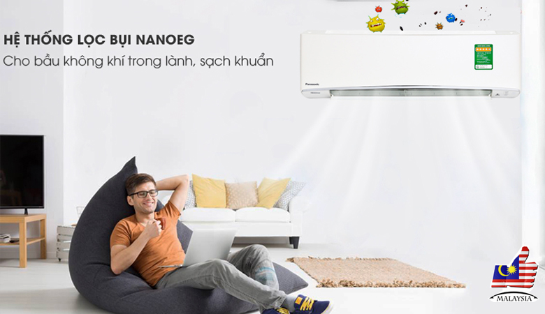 Điều hòa Panasonic RU18AKH-8 được trang bị công nghệ lọc khí Nanoe-G, giúp loại bỏ bụi bẩn, ức chế vi khuẩn và vi rút, đồng thời khử mùi khó chịu trong không gian sống. Nhờ khả năng lọc sạch không khí vượt trội, công nghệ này mang lại môi trường trong lành và an toàn hơn, đặc biệt phù hợp cho gia đình có người cao tuổi và trẻ nhỏ.