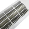 Dạng hình hộp chữ nhật với ống dẫn gas bằng đồng giúp dẫn truyền gas nhanh chóng nhờ đó làm lạnh hiệu quả và lá tản nhiệt bằng nhôm mạ vàng có độ bền cao, hạn chế được tình trạng ăn mòn giúp nâng cao tuổi thọ của máy.