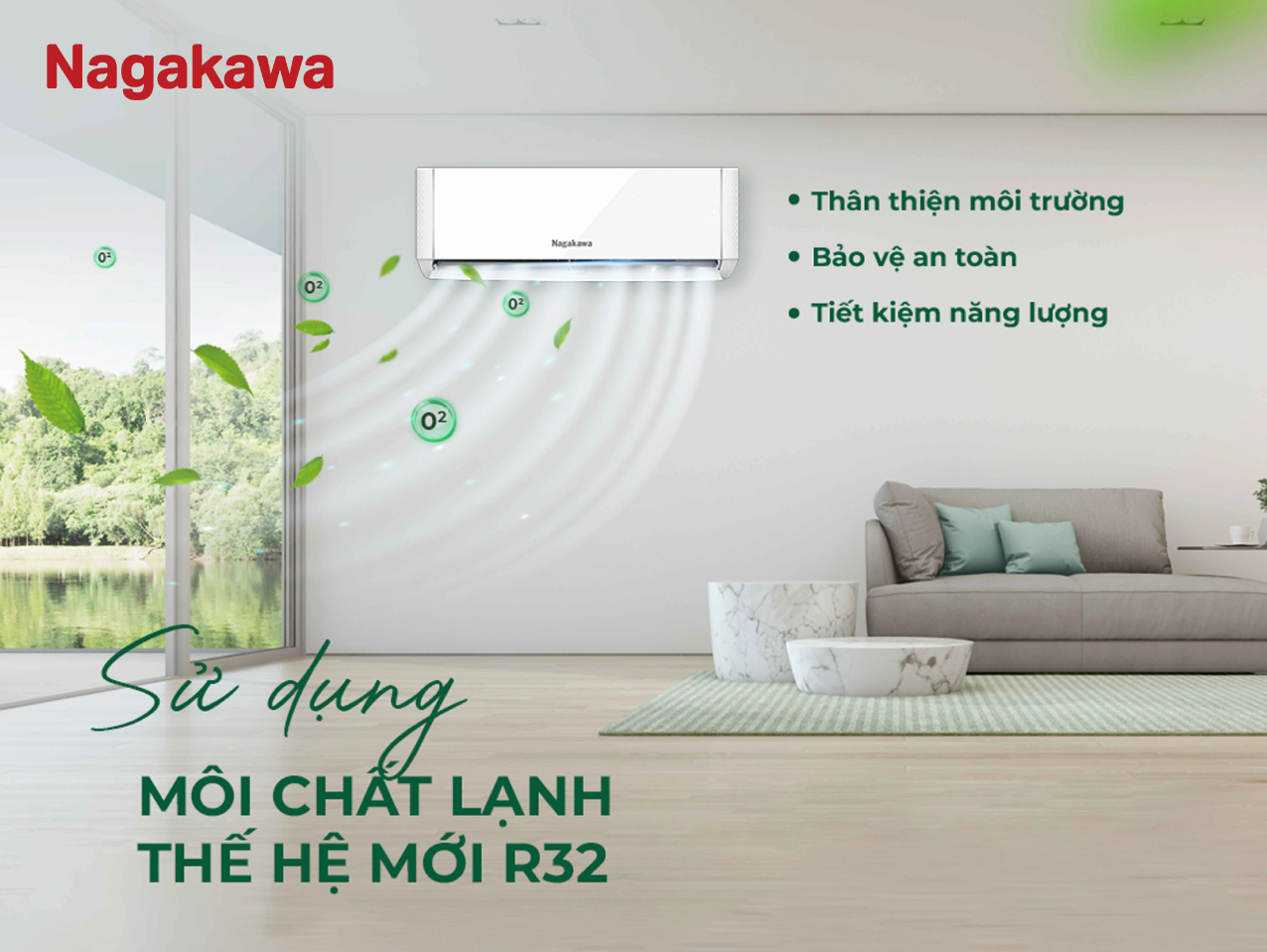 R32 là loại gas truyền tải nhiệt rất hiệu quả, giảm thiểu tiêu thụ điện năng lên đến 10% (so với các dòng điều hòa sử dụng môi chất làm lạnh R22) đạt được tiêu chuẩn khí thải GWP = 675, giúp làm giảm lượng khí thải lên đến 75%, giảm khí độc hại cho môi trường, giảm nguy cơ gây cháy nổ, chống được sự gia tăng nhiệt vốn là nguyên nhân dẫn đến hiệu ứng nhà kính.