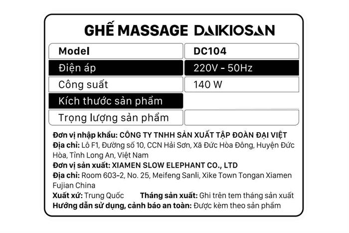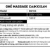 Màu sắc này không chỉ tăng thêm vẻ tinh tế mà còn kết hợp hoàn hảo với nhiều phong cách thiết kế nội thất khác nhau, giúp ghế massage giá rẻ Daikiosan DC104 phù hợp với mọi không gian.