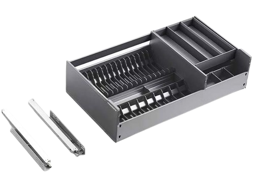 Cấu trúc độc đáo của giỏ kéo ra, có khay đựng dao kéo bên trong dạng trượt, cải thiện tỷ lệ sử dụng không gian. Giá đựng bát đĩa, hộp đựng dao và dĩa có thể di chuyển, tiện lợi và linh hoạt. Cấu trúc lắp đặt nhanh cho cửa tủ, dễ dàng và thuận tiện khi lắp đặt.