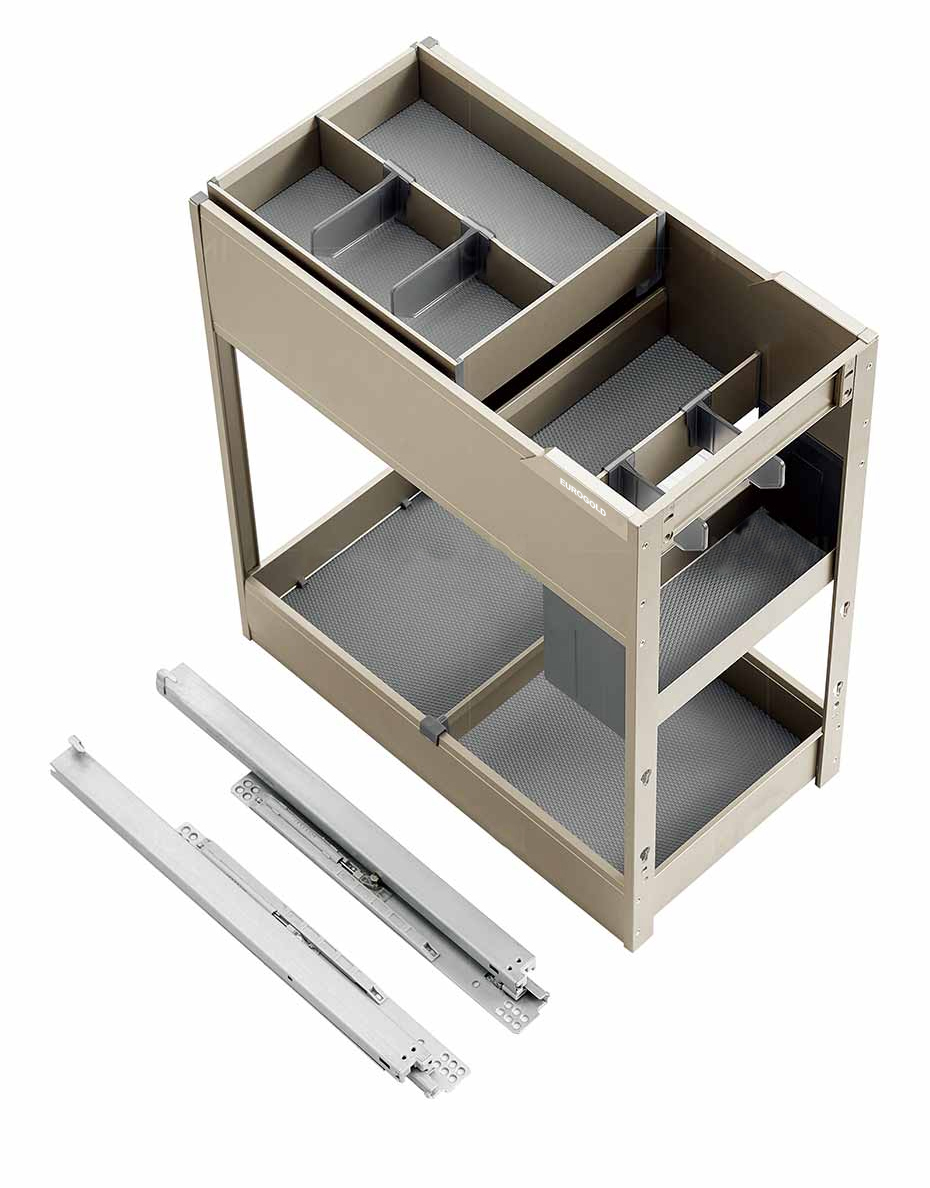 Thiết kế viền mỏng, thể hiện phong cách tối giản và sang trọng nhẹ nhàng, tăng cường khả năng lưu trữ trong bếp. Đáy được phủ thảm chống trượt, ngăn các vật dụng va chạm và thuận tiện trong quá trình vệ sinh.