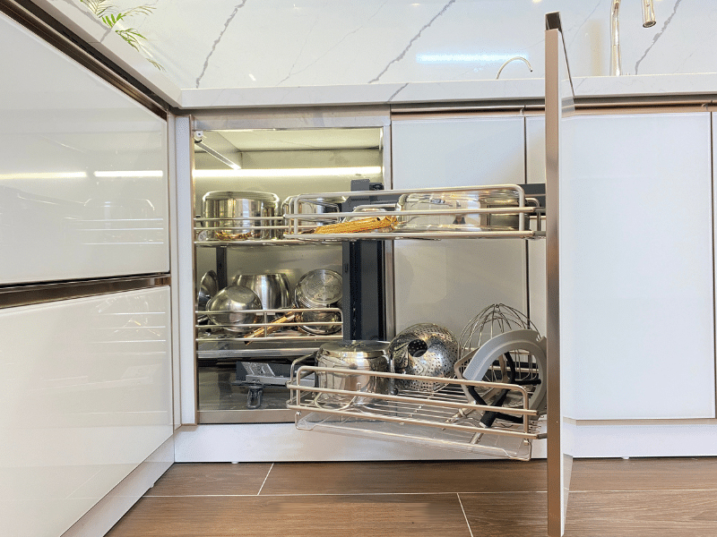 Nhu cầu lưu trữ đồ dùng trong bếp chưa bao giờ là thừa kể cả với những gia đình ít người. Thế nhưng nhiều vị trí như góc tường, góc tủ lại thường bị bỏ không lãng phí vì nằm trong những vị trí hiểm hóc hoặc do thiếu phụ kiện inox cho tủ bếp thích hợp.