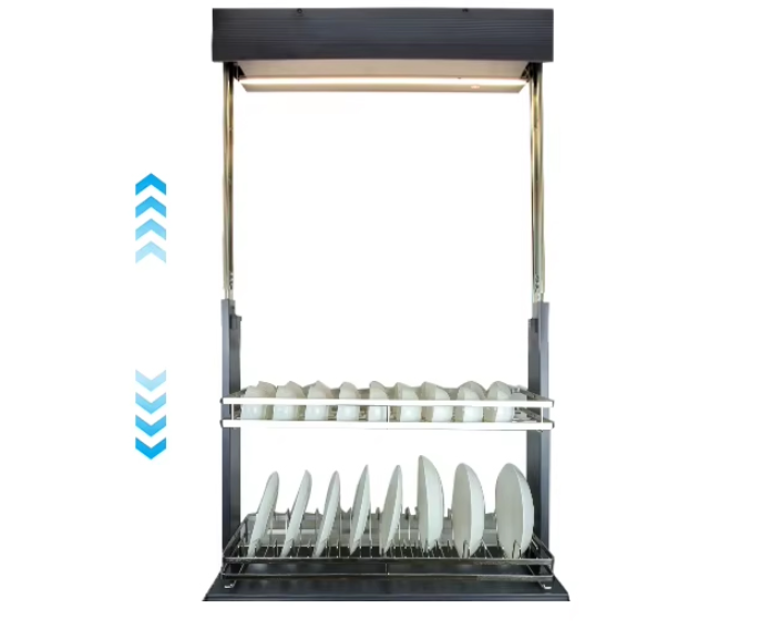 Cấu tạo 2 tầng với 2 chức năng: tầng trên úp bát, tầng dưới úp đĩa. Các thanh nan được cải tiến trong thiết kế và kích thước được đo lường chuẩn xác. Giúp cho bát đĩa luôn được úp thẳng đứng, không bị xô lệch hay bị rơi khỏi giá trong quá trình nâng lên/ hạ xuống từ tủ bếp trên.