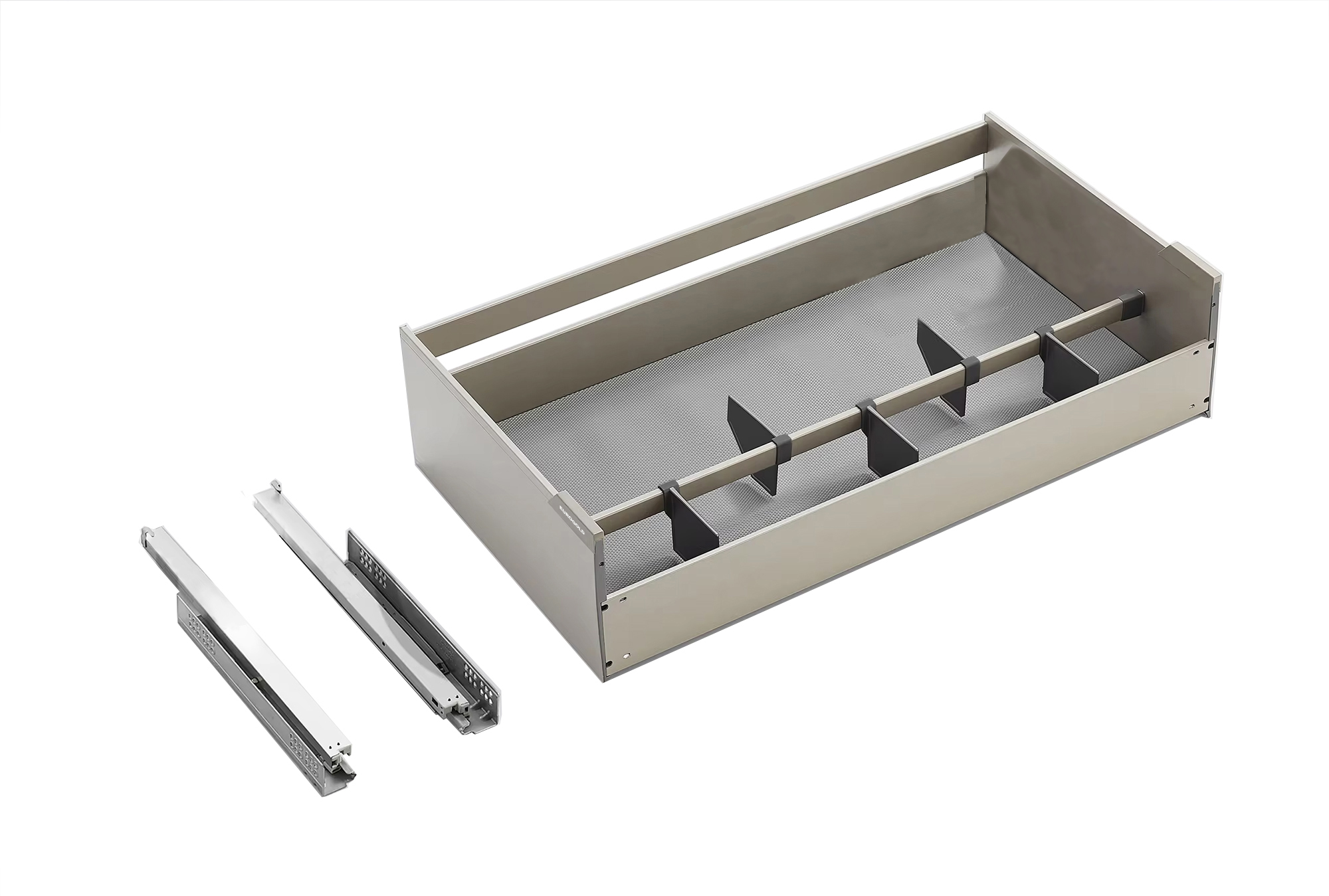 Thiết kế viền mỏng, thể hiện phong cách tối giản và sang trọng nhẹ nhàng, tăng cường khả năng lưu trữ trong bếp. Đáy được phủ thảm chống trượt, ngăn các vật dụng va chạm và thuận tiện trong quá trình vệ sinh.
