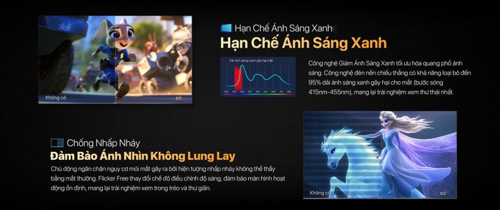 Tích hợp nhiều chế độ bảo vệ sức khỏe mắt