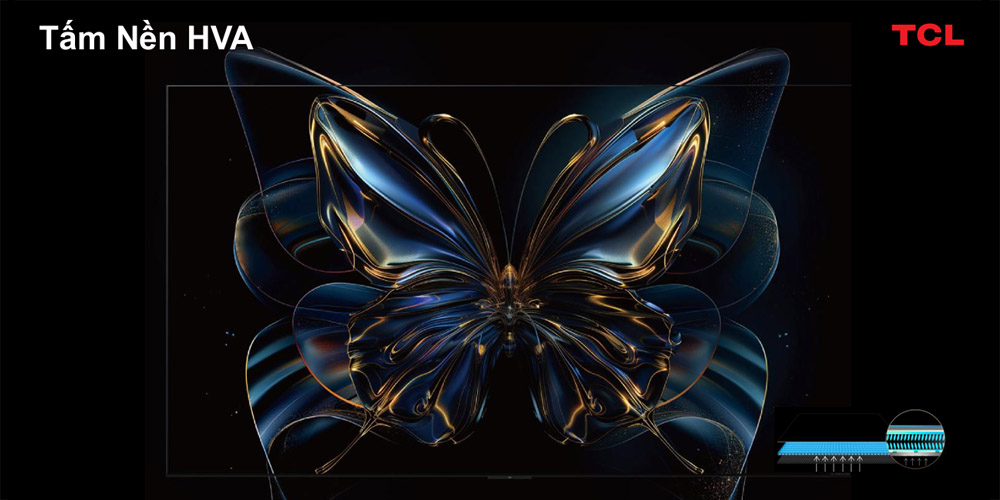 TCL trang bị cho 98P8K tấm nền HVA (High Viewing Angle) cao cấp. Công nghệ này giúp các phân tử tinh thể lỏng truyền tải ánh sáng hiệu quả hơn, mang lại độ tương phản vượt trội và góc nhìn siêu rộng lên đến 178 độ. Điều này giúp bạn có thể thưởng thức hình ảnh chất lượng cao từ mọi vị trí trong phòng.