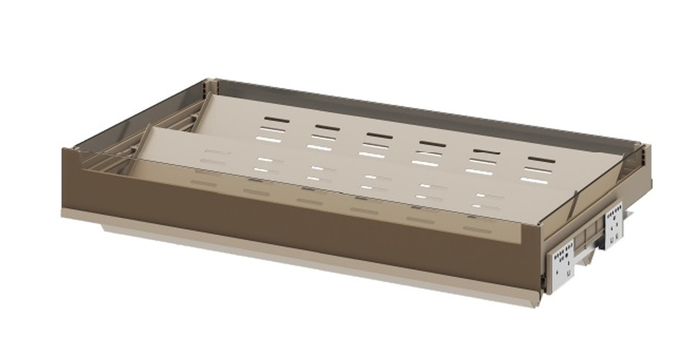 Ray trượt giảm chấn mở toàn phần Kệ được trang bị hệ thống ray âm cao cấp, giúp kéo ra nhẹ nhàng, không gây tiếng ồn, đồng thời mở toàn phần giúp dễ dàng quan sát và lấy giày.