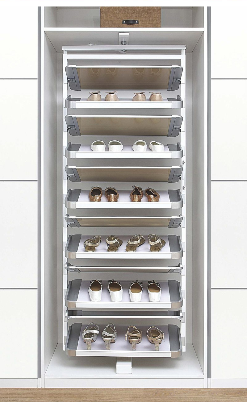 Với thiết kế thông minh có thể xoay 360 độ giúp bạn dễ dàng quan sát và cất đặt cũng như lấy giày dép ra khỏi kệ. Ngoài ra, phụ kiện tủ giày thông minh còn được thiết kế tinh gọn, tối ưu với một diện tích eo hẹp nhưng để được số lượng giày dép gấp nhiều lần các loại giá kệ thông thường.