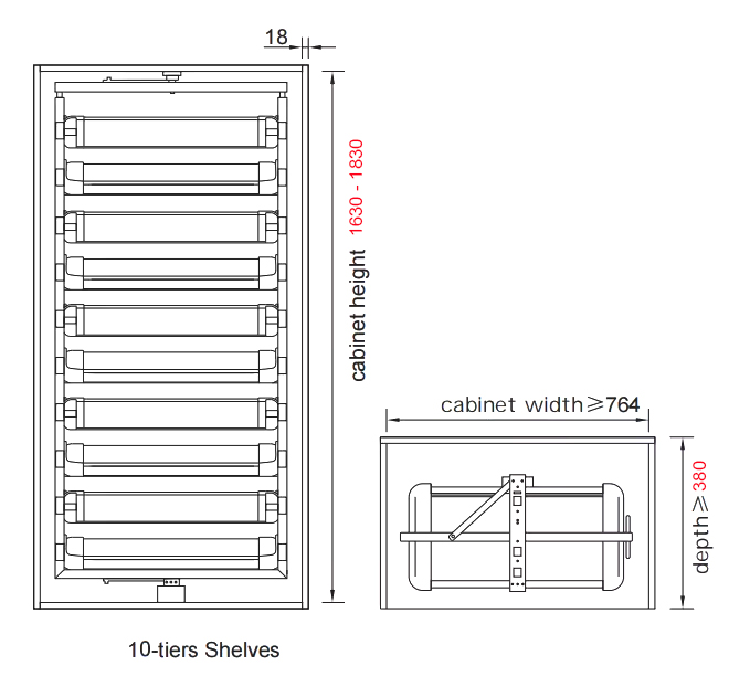 Thiết kế tinh gọn với chiều ngang chỉ từ 80cm giúp kệ dễ dàng phù hợp với nhiều kích thước tủ khác nhau từ tủ to đến tủ bé.