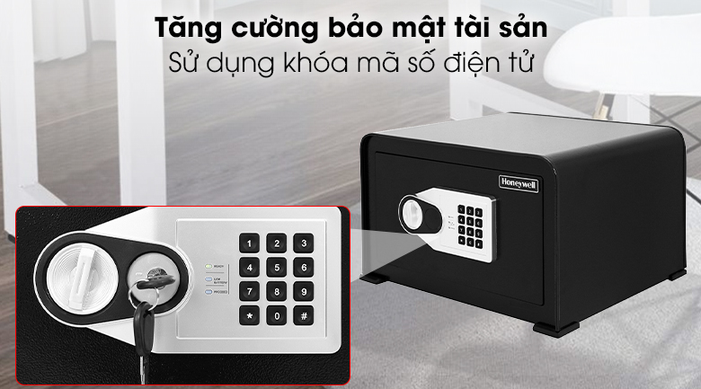 Két sắt Honeywell với chất liệu thép dày 2 lớp giúp bảo vệ an toàn tài sản của bạn khỏi sự cậy, đục hay khoan của kẻ gian.