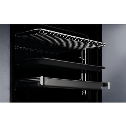 Lò nướng Electrolux KODGH70TXA có khoang lò bên trong được tráng men sáng bóng, dễ lau chùi, có đèn trong khoang lò giúp bạn theo dõi quá trình nấu bên trong dễ dàng mà không cần mở cửa lò. Bên trong lò Electrolux KODGH70TXA gồm có 2 giá đỡ 2 bên để bỏ khay nướng vào làm bằng inox không gỉ sét và không độc hại, bên trên là hệ thống thanh nhiệt dày đặc, bên trong là quạt đối lưu và cuối cùng là đèn chiếu sáng giúp người sử dụng có thể nhìn thấy thực phẩm trong quá trình chế biến.