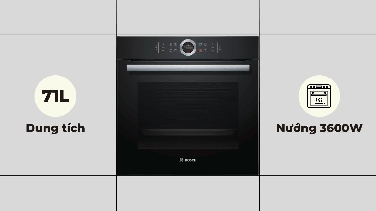 Mẫu lò nướng Bosch này có dung tích tương đối lớn, lên đến 71L. Vậy nên nó sẽ đáp ứng tốt cho nhu cầu nấu nướng đa dạng của gia đình đông thành viên.