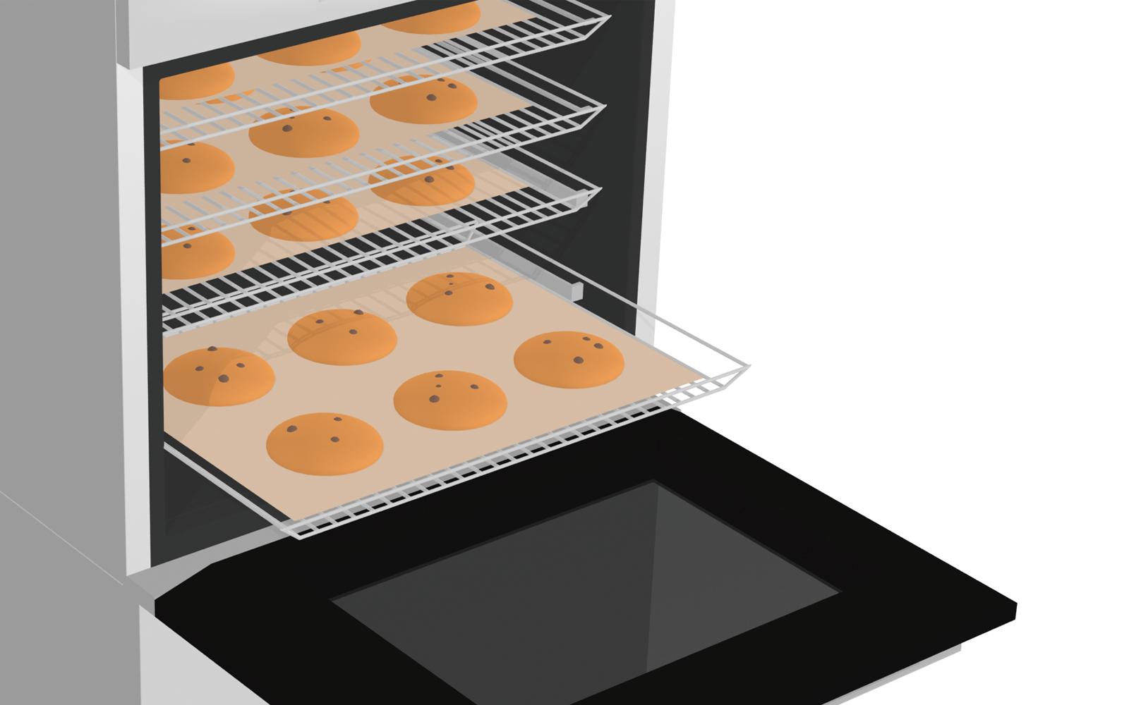 Với luồng nhiệt nóng 4 chiều, nhiệt được phân bổ đồng đều. Do đó, thực phẩm có thể đặt đồng thời ở bốn kệ, bạn cũng có thể nướng và quay ở bốn cấp độ đồng thời và vẫn đảm bảo kết quả đồng nhất từ trên xuống dưới.