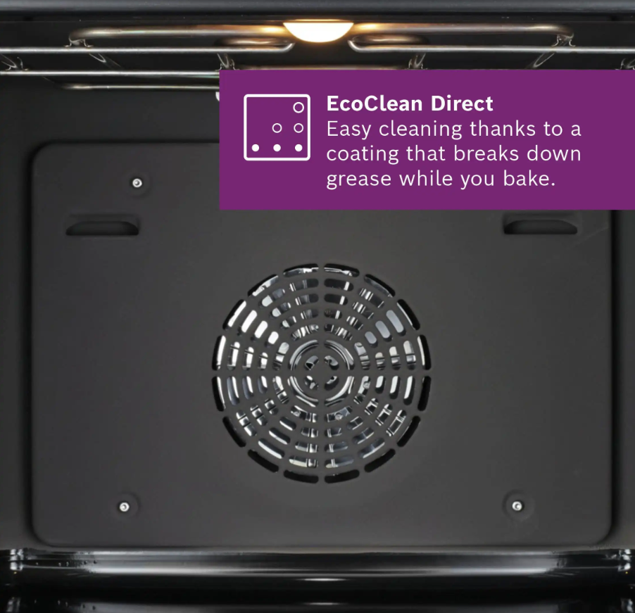 Với công nghệ EcoClean Direct, lò nướng Bosch HBG7241B1 vừa được hỗ trợ làm sạch và vừa giúp tiết kiệm năng lượng. Bề mặt bên trong khoang lò được tạo thành từ một lớp các hạt gốm vi mô giúp phá vỡ các vết dầu mỡ bắn ra trong quá trình nướng. Từ đó, người dùng có thể tiết kiệm đáng kể thời gian và năng lượng.