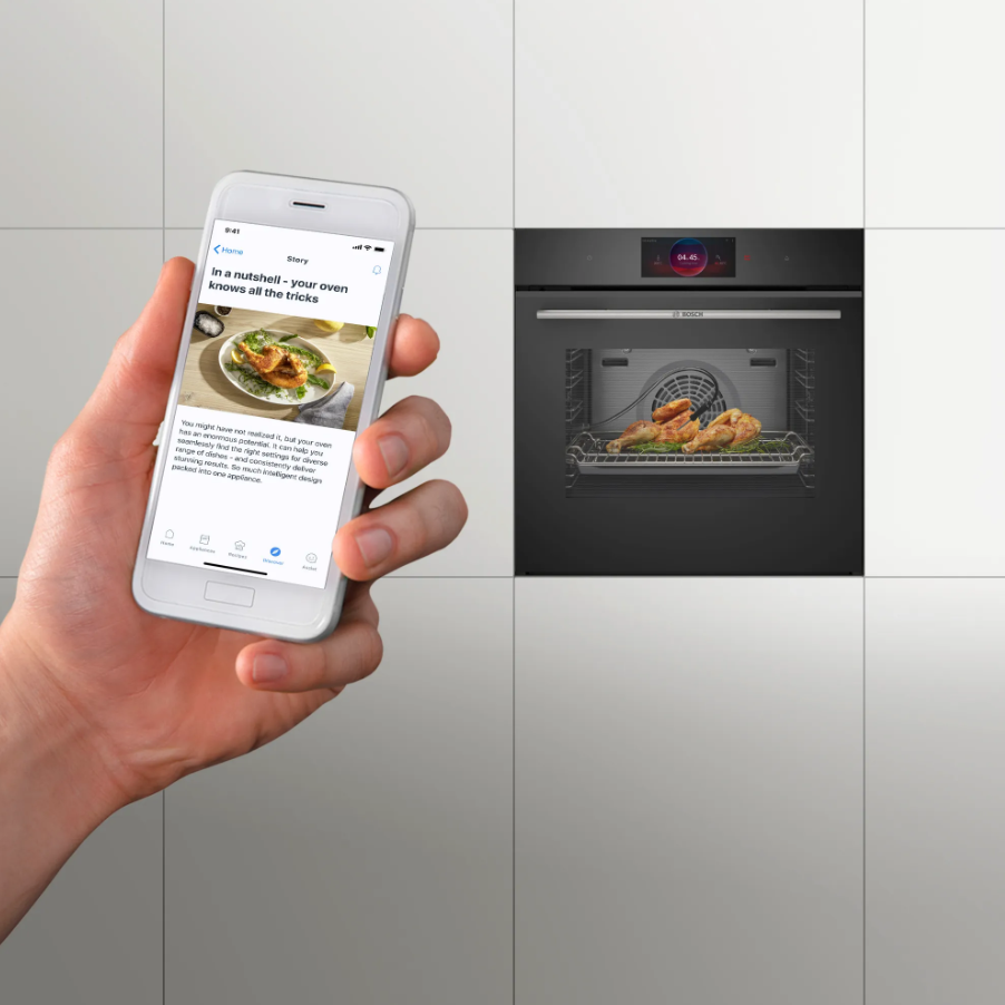 Hãy tưởng tượng bạn có thể điều khiển lò nướng Bosch HBG7241B1 ngay cả khi bạn không ở trong bếp. Rất dễ dàng, bạn chỉ cần liên kết lò nướng với tài khoản Home Connect của mình. Ngoài ra, bạn có thể tận hưởng các dịch vụ của hệ sinh thái đối tác rộng lớn của Bosch. Bạn thậm chí có thể điều khiển lò bằng giọng nói của mình bằng Amazon Alexa. Chọn chức năng nấu, thay đổi cài đặt và quản lý các mục yêu thích của bạn. Cài đặt được đồng bộ hóa giữa ứng dụng và lò nướng. Bạn cũng có thể cập nhật lò nướng của mình bằng cách tải xuống phần mềm.