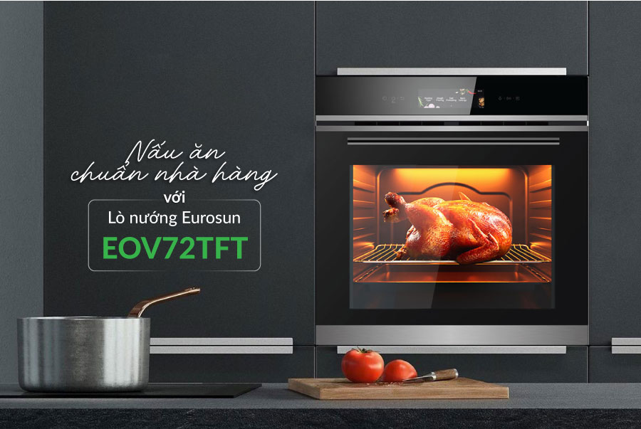 Lò nướng âm tủ EOV72TFT có thiết kế đẹp mắt, điều khiển cảm ứng TFT với màn hình màu sắc nét. Lò được thiết kế bề mặt kính cường lực 3 lớp, chịu lực chịu nhiệt, chống tia UV. Sản phẩm mang một nét đẹp thanh lịch theo phong cách châu Âu.